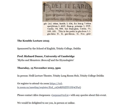 Kemble Lecture 2025: ‘Myths and Monsters: Beowulf and the Etymologists’